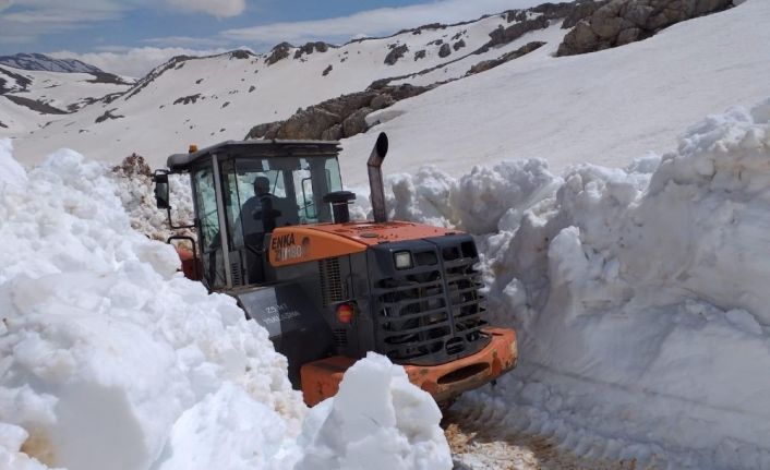 Karla kaplı Göktepe Yayla Yolu açılıyor