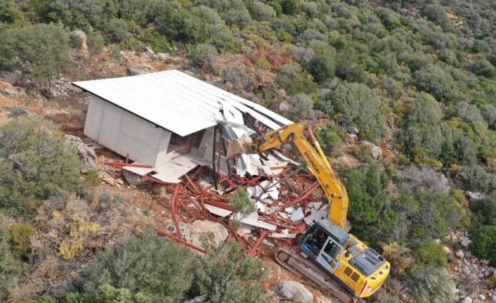 Antalya’nın Kaş ilçesinde 5 kaçak yapı, belediye ekiplerince yıkıldı.
