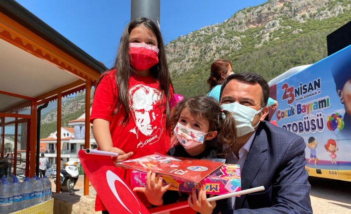 Antalya’nın Kaş ilçesinde Kaymakam Şaban Arda Yazıcı ve Belediye Başkanı Mutlu Ulutaş, 23 Nisan Otobüsüyle cadde ve sokakları gezip çocukların bayram sevincini paylaştı.
