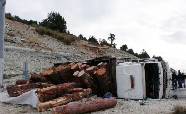 Antalya’nın Kaş ilçesi Gömbe karayolu üzerinde kereste yüklü kamyon hızlı girdiği kavşaktan dönüş yaparken devrildi. Kazada sürücü yaralandı.