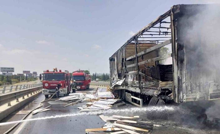 Antalya’da mobilya malzemesi yüklü tır seyir halindeyken yandı. İtfaiye ekiplerinin zamanında müdahalesi ile yangın söndürülürken büyük çapta maddi hasar meydana geldi.