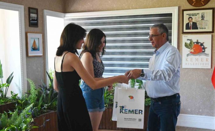 Öğrencileri makamında ağırlayan Kemer Belediye Başkanı Necati Topaloğlu, iki öğrenciyi de yürekten tebrik ettiğini söyledi. “Sevinçten ne diyeceğimizi bilemiyoruz” diyerek söze başlayan Başkan Topaloğlu, “Uzunca bir zaman emek verdiniz. Öğretmenleriniz ve aileleriniz de emek verdi. Sonuçta bu emeğin karşılığını aldınız. Türkiye’de bu sınava 3,5 milyon öğrenci girdi. 3,5 milyon öğrencinin içinde 117’inci Şevval Yağmur Öztürk oldu. 11 bininci de Doğa Demirel oldu. Doğa, deprem bölgesi Maraş’tan gelerek Türkiye sıralamasına girmeyi başardı. O kötü psikolojiden gelerek şu anda bizim dershanemizde öğrenim görerek sıralamaya girmesi çok çok büyük bir başarı gerçekten tebrik ederim” dedi.