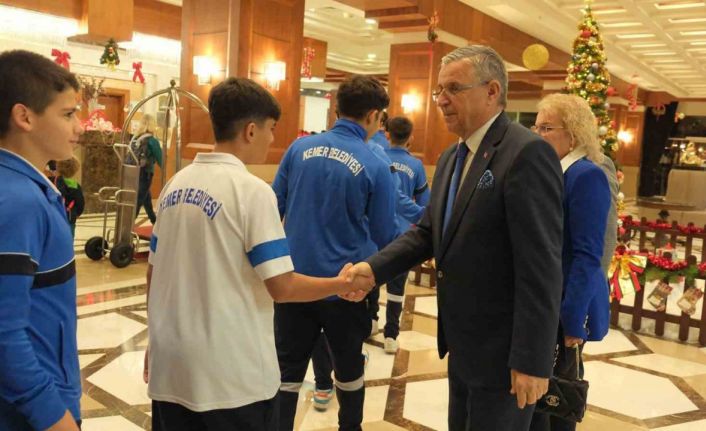 Antalya’nın Kemen ilçesinde bir otelde düzenlenen moral yemeğine, Başkan Topaloğlu’nun yanı sıra Kemer Belediye Meclis Üyeleri, teknik direktörler Melih Bildiş, Tayfun Yaz ve İskender Gökcan, U12, U14 ve U16 futbolcuları katıldı. Başkan Topaloğlu ve meclis üyeleri, futbolcuları ve kulüp yönetimini otelin kapısında karşılayarak selamlaştı. Yemek sırasında geleceğin futbolcularıyla sohbet eden Başkan Topaloğlu, kendilerini ağırlayan otel yönetimine ise teşekkür etti.