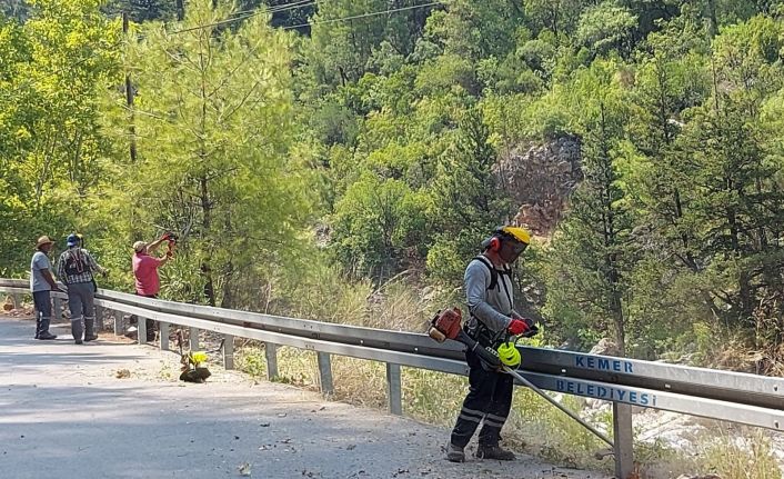 Kemer Belediyesi Park ve Bahçeler Müdürlüğü ekipleri, Kesme boğazı-Gedelme mevkii arasındaki yol kenarlarında bulunan kuru otların ve çalıların tırpanlama işlerini gerçekleştirdi. Belediye ekipleri, öte yandan, yollarda tırpanlama işleri yaparken, yolu arazöz ile ıslatarak yangın ihtimaline karşı önlem aldı.
