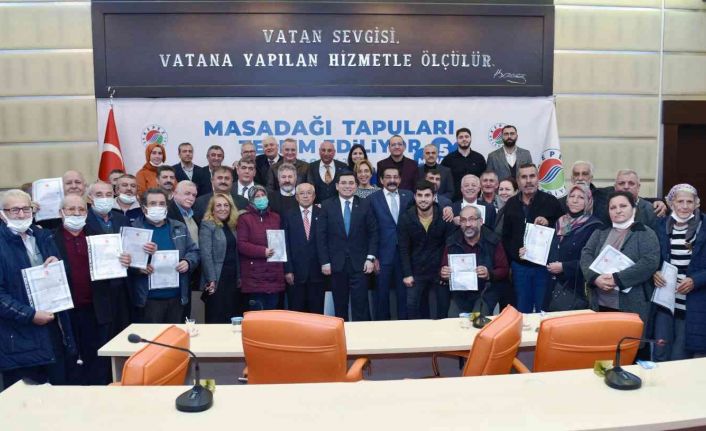 Kepez Belediyesi Meclis salonunda düzenlenen temsili tapu törenine Başkan Hakan Tütüncü, AK Parti Kepez İlçe Başkanı Bahattin Bayraktar, MHP Kepez İlçe Başkanı Mehmet Seyyar, meclis üyeleri, muhtarlar ve tapuları dağıtılacak vatandaşlar katıldı.