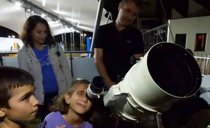 Antalya Bilim Merkezi’nin 7’den 77’ye hitap eden gözlem şenliğine katılanlar, Ay, Jüpiter ve Satürn’ü gözlemleyip gök cisimleri hakkında bilgi alıyor.
