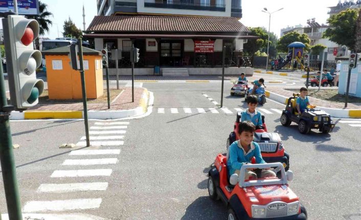 Trafik Eğitim Parkurunda kurulan mini sokaklar arasında akülü oyuncak araçları kullanan çocuklara, trafik kuralları uygulamalı olarak gösterildi, öğrencilerin soruları cevaplandı. Trafik Güvenliği Eğitimleri, 2022-2023 öğretim yılı boyunca pazartesi, salı, çarşamba, perşembe ve cuma günleri sabah ve öğleden sonraları 2’şer grup halinde devam edecek.