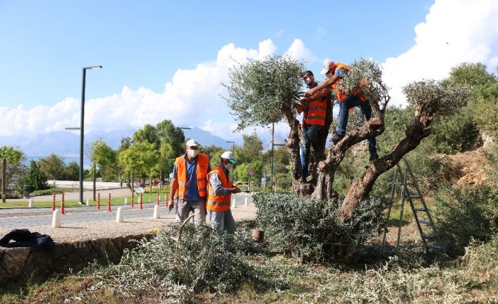 Büyükşehir Belediyesi Park ve Bahçeler Dairesi Başkanlığı ekipleri Konyaaltı Sahili ve Akdeniz Bulvarı’nda çalı grubu bitkiler ile ağaçları kışa hazırlıyor. Konyaaltı Varyant’tan Boğaçayı‘na kadar sahil boyunca geniş çaplı bir çalışma yürüten ekipler, fırtına mevsimi öncesi kuruyan, kırılma tehlikesi bulunan ağaçların dallarını budayarak, bakımlarını yapıyor.