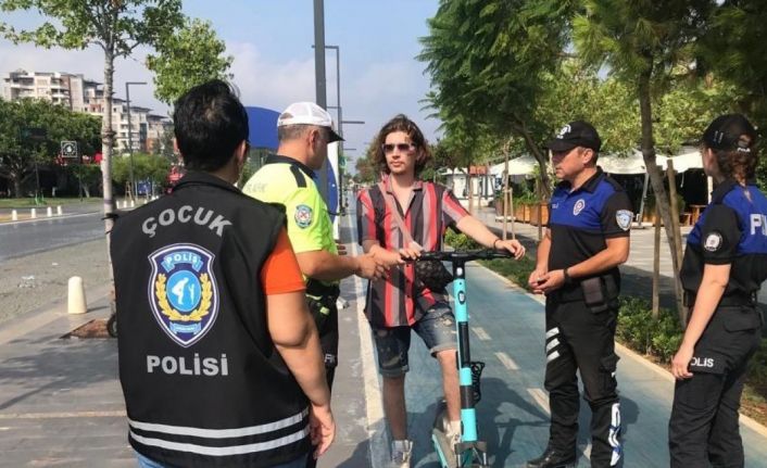Antalya’da polis ekipleri, scooterların sıklıkla kullanıldığı Konyaaltı sahilinde sürücülere sürüş kurallarını hatırlatarak uyarılarda bulundu.
