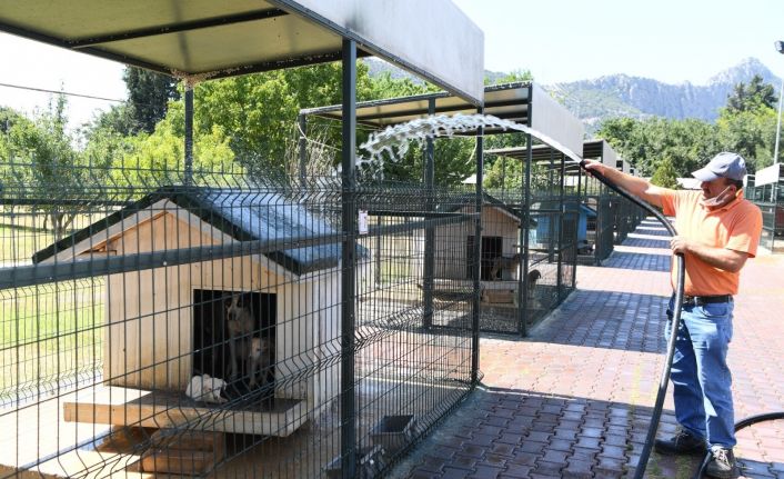 Konyaaltı Belediyesi Sokak Hayvanları Sağlık ve Rehabilitasyon Merkezi’nin misafirleri, sıcak yaz günlerinde banyo seanslarıyla serinliyor.