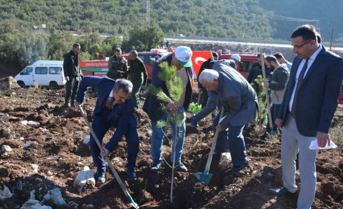 Etkinlik çerçevesinde 500 adet muhtelif türlerdeki fidanlar toprakla buluşturuldu