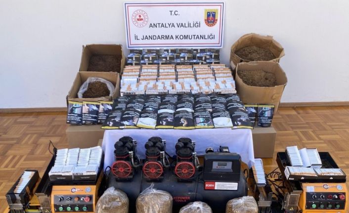 Antalya’da jandarma ekiplerince düzenlenen operasyonda çok miktarda kaçak tütün ve tütün mamulü ele geçirildi.