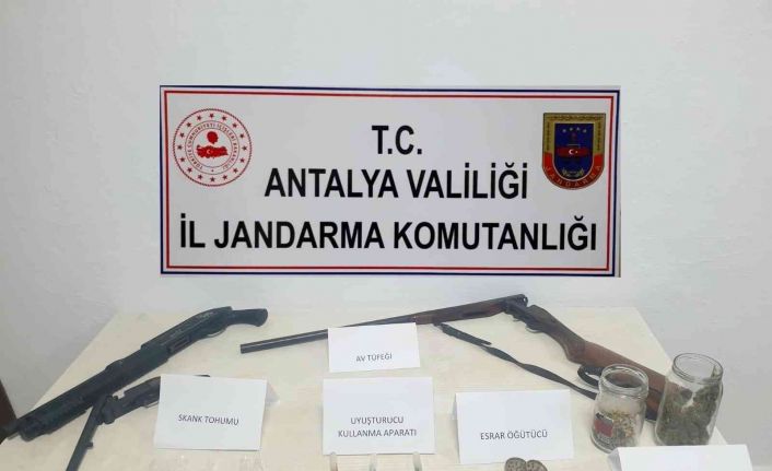 Antalya’nın Kumluca ilçesinde ikametinde uyuşturucu madde ve ateşli silah bulunduran şahsın evine jandarma ekipleri operasyon düzenledi. Operasyonda çok miktarda uyuşturucu madde ile ruhsatsız ateşli silahlar ele geçirildi.