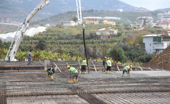 Alanya Belediyesi’nin Mahmutlar’da hayata geçirdiği Kültür ve Etüt Merkezi inşaatında çalışmalar hızla sürüyor.