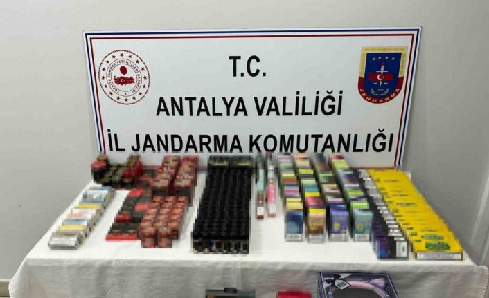 Antalya İl Jandarma Komutanlığı KOM Şube Müdürlüğü ve Manavgat İlçe Jandarma Komutanlığı ekipleri tarafından Manavgat ilçesinde 2 şüphelinin işletmesinde kaçak sigara, kaçak tütün, elektronik sigara ile bandrolsuz ve faturasız bitkisel karışımlı ürünlerin satışının yapıldığının tespit edilmesi Manavgat Cumhuriyet Başsavcılığı talimatıyla operasyon düzenlendi. İş yerinde yapılan aramada, 60 paket kaçak sigara, 110 elektronik sigara, 20 kaçak tütün paketi, 20 elektronik ürün, 70 ginseng bitkisel ürün ele geçirildi.