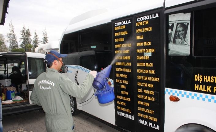 Manavgat Belediyesi ve Şoförler Odası toplu taşıma araçlarının dezenfekte edilmesi konusunda işbirliği yaptı.