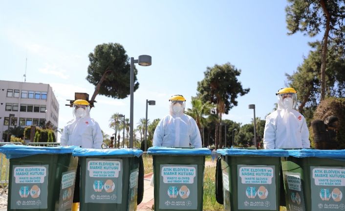 Alanya Belediyesi Temizlik İşleri Müdürlüğü, geçtiğimiz hafta uygulamaya koyduğu 238 adet atık maske ve eldiven kutularını Şehir geneline yayarak çalışmalarını sürdürüyor.