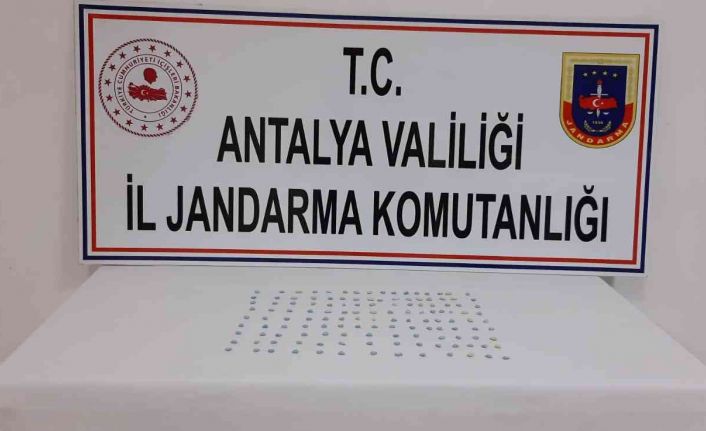 Antalya’nın Kumluca ilçesinde Jandarma ekipleri Mersin’den Kumluca’ya uyuşturucu madde getirip piyasaya sürmeye çalışan şahsa yönelik operasyon düzenledi. Şahsın valizinde 134 adet uyuşturucu hap ele geçirilirken şüpheli, gözaltına alındı.
