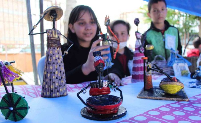 Antalya’da ilkokul öğrencileri ve velileri evlerinde ve okulda ortaya çıkan geri dönüşüm malzemelerinden çeşitli dekoratif ürün yaptı.