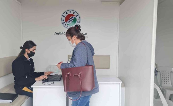 Kepez Belediyesi’nin Mobil Kanser Tarama Tır’ı Alanya’nın Alanya ilçesine bağlı Mahmutlar Mahallesi’nde meme, bağırsak ve rahim ağzı kanser taraması yapıyor.