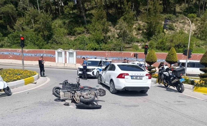 Antalya’nın Manavgat ilçesinde motosikletle otomobilin kavşak sisteminde çarpıştığı kazada 2 kişi yaralandı.