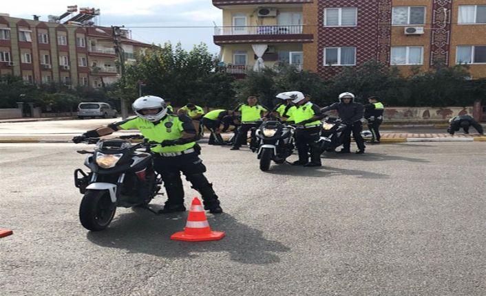 Antalya’da motosikletli trafik timlerinde çalışan personele sürüş teknikleri eğitimi verildi.