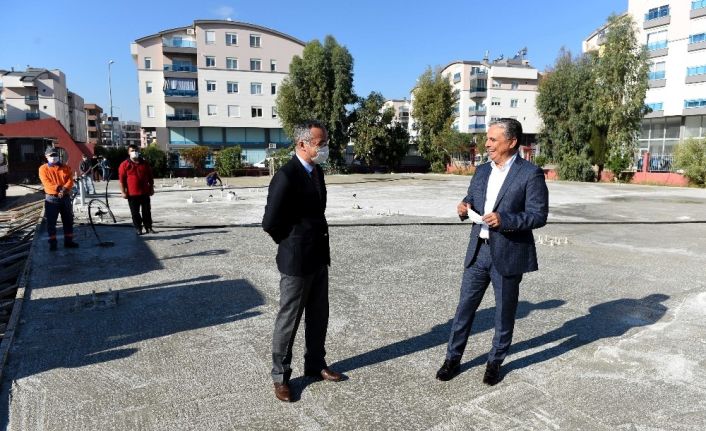 Kızıltoprak Mahallesi’nde, bin 95 öğrencisi bulunan Antalya’nın 30 yıllık eğitim kurumunda bu yılın ocak ayında başlayan ancak farklı fonksiyonlar eklenmesiyle değişen projesi ve pandemi süreci nedeniyle ara verilen spor salonu inşaatı, zemin betonunun dökülmesiyle yeniden başladı. Hafta içi, Park ve Bahçeler Müdürlüğü ekipleri beton dökümü tamamlarken Başkan Uysal da çalışmaları yeninde inceledi. Başkan Uysal’a, incelemesi sırasında okul müdürü Bahri Toker eşlik etti.