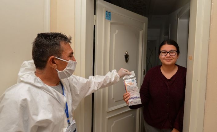 Antalya’da Muratpaşa Belediyesi’nin yaklaşık 510 bin nüfuslu ilçede ev ev maske dağıtımları devam ediyor. Hafta sonu tamamlanacak dağıtımı için hazırlanan 250 kişilik ekip, evlerin kapısına üçerli paketler halinde hazırlanan yıkanabilir maskeleri bırakıyor.