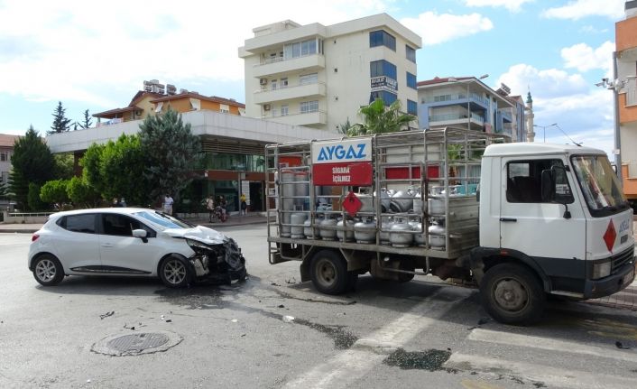 Kaza, Manavgat ilçesi Çetin Emeç Caddesinde meydana geldi. Edinilen bilgiye göre, Demokrasi Bulvarı istikametinden gelip gençlik merkezi istikametine seyir halindeki Neriman Yıldırım’ın kullandığı 07 ASL 140 plakalı otomobil, Sorgun Bulvarı istikametinden gelip kavşakta 5017 sokak istikametine dönmekte olan Cuma Altınoluk’un kullandığı 07 ASL 140 plakalı tüp kamyonuna yandan çarptı. Otomobilde büyük çapta hasar oluşmasına neden olan kazada otomobilde yolcu olarak bulunan Sena Yıldırım yaralandı. Yaralı, 112 sağlık ekibinin olay yerindeki müdahalesinin ardından ambulansla hastaneye kaldırıldı.