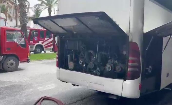 Antalya’nın Manavgat ilçesinde park halindeki otobüsün motor bölümünde çıkan yangın itfaiyenin hızlı müdahalesi ile büyümeden söndürüldü.