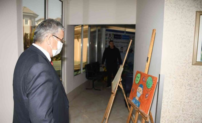 Kaymakam Gemici, Başkan Topaloğlu ve beraberindekiler, sağlık çalışanlarına yönelik şiddetin önlenmesi, saygı ve sevgi farkındalığının artırılması amacıyla yapılan resim yarışmasına katılan öğrencilerin resimlerini tek tek inceledi.