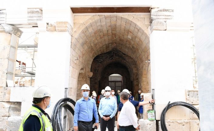 Vali Münir Karaloğlu Antalya’nın Fetih sembolü Şehzade Korkut Camiinde devam eden restorasyon çalışmalarını inceledi. Yetkililerden caminin son durumu hakkında bilgi alan Vali Karaloğlu, Caminin ahşap işlemeli bölmeleri hakkında bilim kurulunun hazırladığı sunumu dinledi.