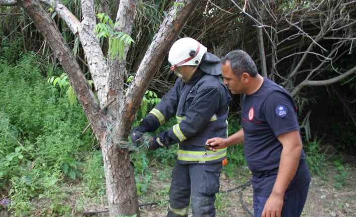 Serik’te ağlara dolanan yılanı itfaiye kurtardı