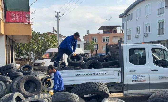 Sinekle mücadele çalışmalarına yaz-kış aralıksız devam eden Antalya Büyükşehir Belediyesi, sinekler için önemli bir üreme kaynağı olan eski araç lastiklerini toplayarak, geri dönüşüme gönderiyor.