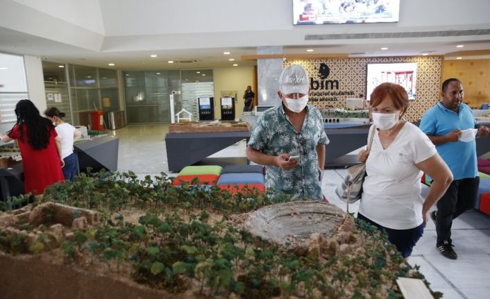 Büyükşehir Belediyesi, Antalya çevresinde yer alan tarihi yerlerin tanıtımına katkı sağlamak amacıyla belediye fuaye alanında maketlerini sergiliyor. Belediyede işi olan vatandaşlar hizmet binası girişindeki fuaye alanında yer alan minyatür eserleri büyük bir dikkatle inceliyor. Side’den Aspendos Antik Tiyatrosu’na, Termesos’tan Perge’ye kentin en önemli yerlerini gören misafirler maketlere büyük ilgi gösteriyor.