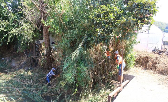 Antalya Büyükşehir Belediyesi Kumluca’da tarımsal sulama kanallarında temizlik çalışması başlattı.