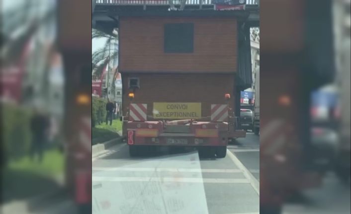 ANTALYA’NIN ALANYA İLÇESİNDE ÜZERİNDE TAŞINABİLİR AHŞAP EV BULUNAN BİR TIR ÜST GEÇİDİN ALTINDAN GEÇTİĞİ ESNADA SIKIŞTI. SIKIŞAN TIRIN SÜRÜCÜSÜ BİR SÜRE SONRA ARACI TEKRAR HAREKET ETTİRDİ.