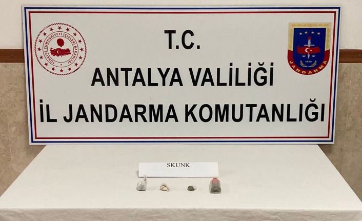 Antalya’nın Manavgat ilçesinde uyuşturucu madde bulundurduğu tespit edilen 4 şüpheli, jandarma ekipleri tarafından yakalandı. Şüphelilerin yapılan üst aramalarında 19 gram skunk maddesi ele geçirildi.