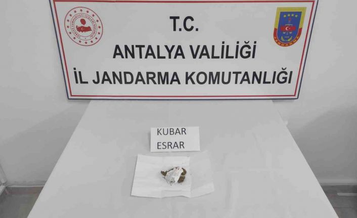 Antalya’nın Gazipaşa ilçesinde Jandarma ekiplerinin kimlik kontrolü yapmak için durdurduğu otobüsteki yolcunun üzerinden 9 gram kubar esrar çıktı. Olay ile ilgili adli işlemler başlatıldı.