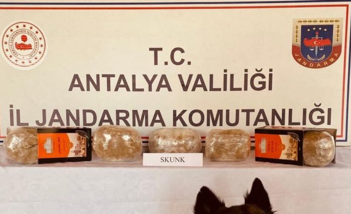 Antalya İl Jandarma Komutanlığı KOM Şube Müdürlüğünce uyuşturucu madde ile mücadele bünyesinde yürütülen çalışmalar neticesinde S.M. isimli şahsın İstanbul’dan Antalya’ya uyuşturucu madde getireceği bilgisi alınması üzerine bugün KOM Şube Müdürlüğü, Asayiş Şube Müdürlüğü JASAT Timi ve Döşemealtı İlçe Jandarma Komutanlığı ekiplerince Kovanlık yol kontrol noktasında şüpheliye ait araçta uyuşturucu madde arama köpeği Karbon ile yapılan aramada; 65 gram metamfetamin uyuşturucu maddesi, 220 gram plaka esrar uyuşturucu maddesi ele geçirildi.