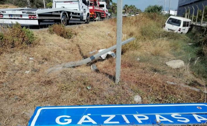 Antalya’nın Gazipaşa ilçesinde direksiyon hakimiyetini kaybeden minibüs sürücüsü, yol kenarındaki tabelaya çarpıp yaralandı.