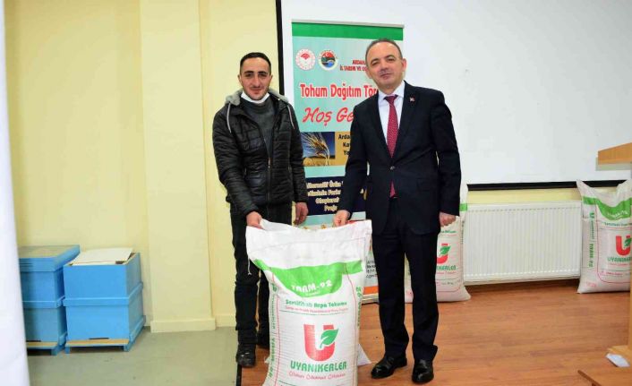 Kafkas Arısı Üretim, Eğitim ve Gen Merkezi Müdürlüğünde düzenlenen törende 718 çiftçiye yaklaşık 7 bin 180 dekar alan için 143 ton arpa ve 10 ton tritikale tohumu verildi.