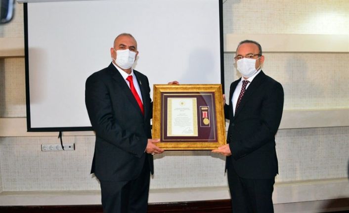 Ardahan Valisi Hüseyin Öner, İç Güvenlik Gazisi Adnan Tatlı’ya gönderilen Devlet Övünç Madalyası ve Beratını, Cumhurbaşkanı Recep Tayyip Erdoğan adına takdim etti.