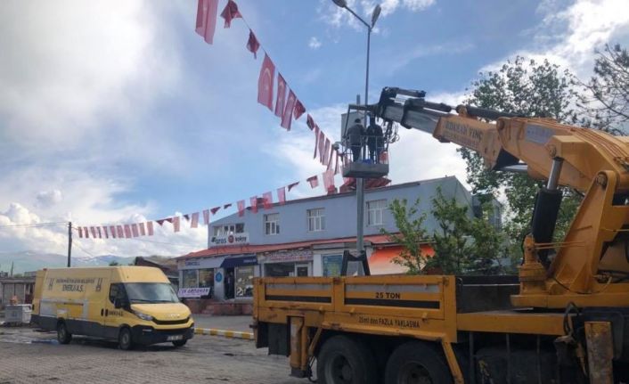 Erzurum Büyük Şehir Belediye Başkanı Mehmet Sekmenin göndermiş olduğu ekipler ilçe esnafını mağdur etmeden, caddeyi ışıklı süslemelerle aydınlatarak güzel bir görüntüye kavuşturdu.