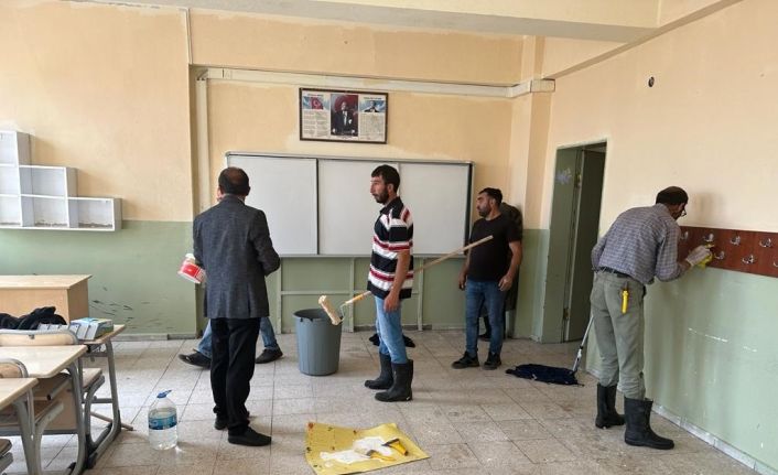 Çıldır Şehit Öğretmen Sezgin Yolcu Orta Okulunda öğrencilerin daha hijyenik ve temiz bir ortamda eğitim alması için hazırlıklar son sürat devam ediyor.