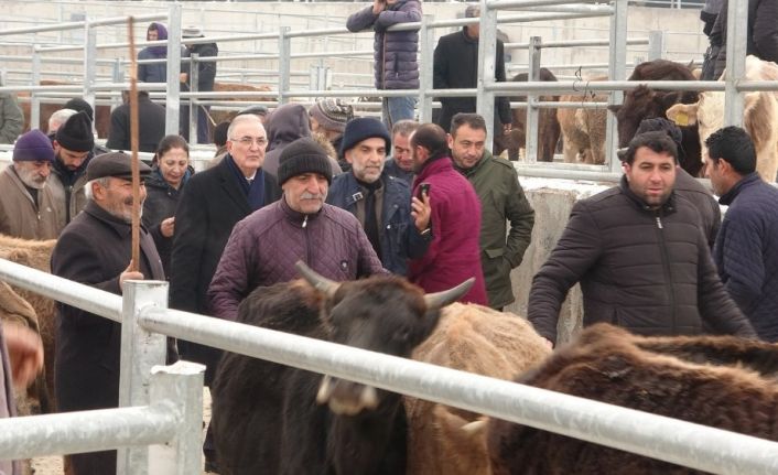 CHP Ardahan eski Milletvekili Ensar Öğüt, CHP Ardahan İl Başkanı Yalçın Taştan ile birlikte Ardahan Hayvan Pazarında besicilerle bir araya geldi.