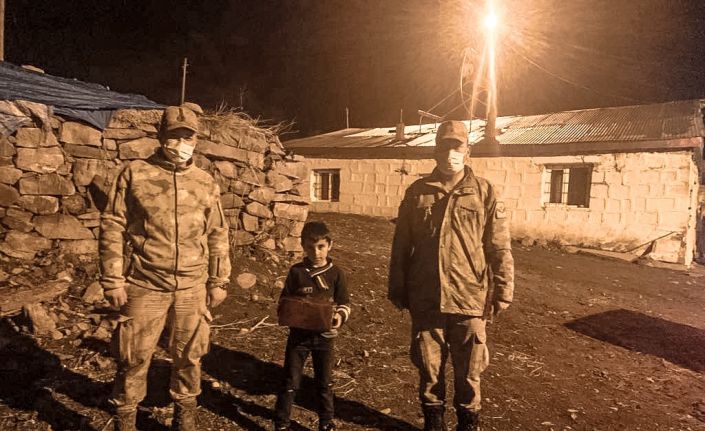 Köyde jandarma kontrol noktasına gelerek, doğum günü olduğunu söyleyen 6 yaşındaki Devren Ekmekçi’ye pasta ile sürpriz kutlama yapıldı.