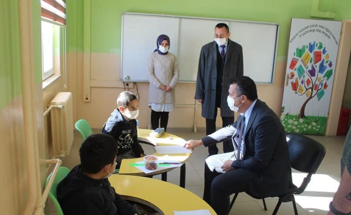 Çıldır İlkokulu, Şehit Taner Karadeniz Ortaokulu ve Aşık Şenlik İlkokulundaki özel eğitim sınıflarını ziyaret eden Kaymakam Bayram öğrencilerle sohbet ederek, öğretmenlerinden eğitimleri konusunda bilgi aldı.