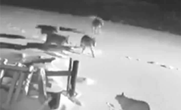 Kurtların, parçaladıkları köpekleri sürükleyerek götürme anı ise güvenlik kameralarına saniye saniye yansıdı.