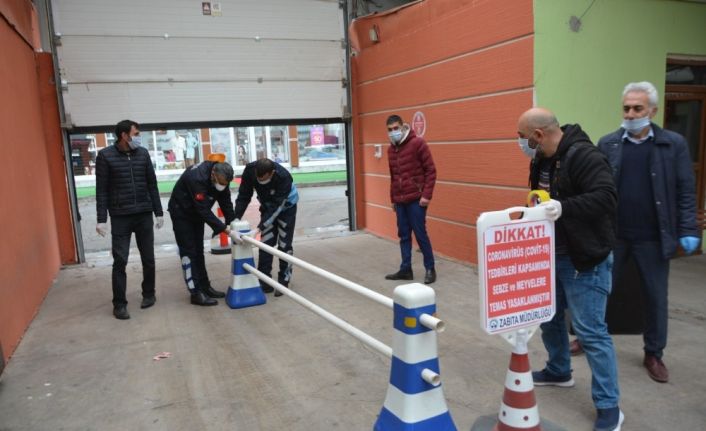 Koronavirüs (Covid-19) tedbirleri kapsamında pazarın bir gün öncesinden sabunlu suyla yıkanan halk pazarına, sosyal mesafenin korunması amacıyla da bariyerler yerleştirildi.